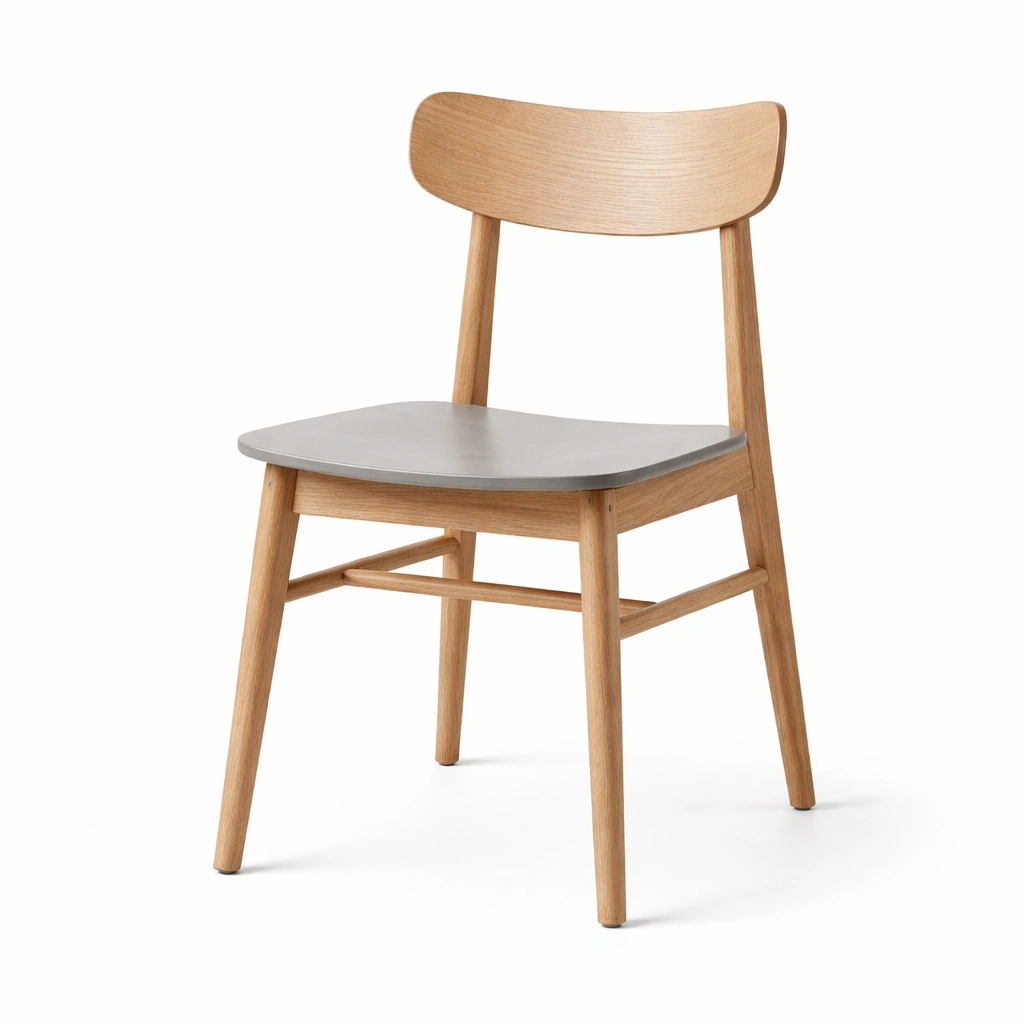 Silla de comedor de roble con asiento de plastico gris