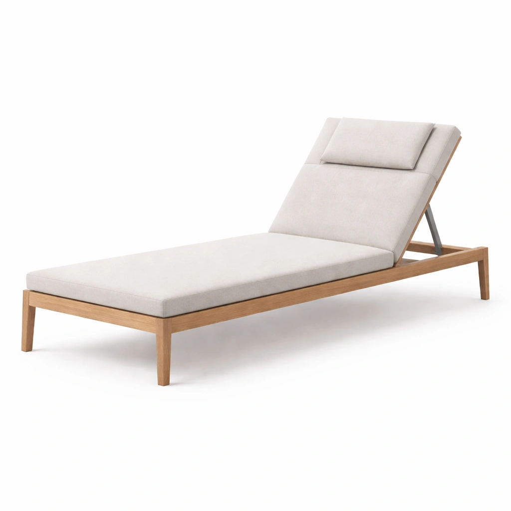 Material: estructura de madera de teca, cojín de poliéster y algodón